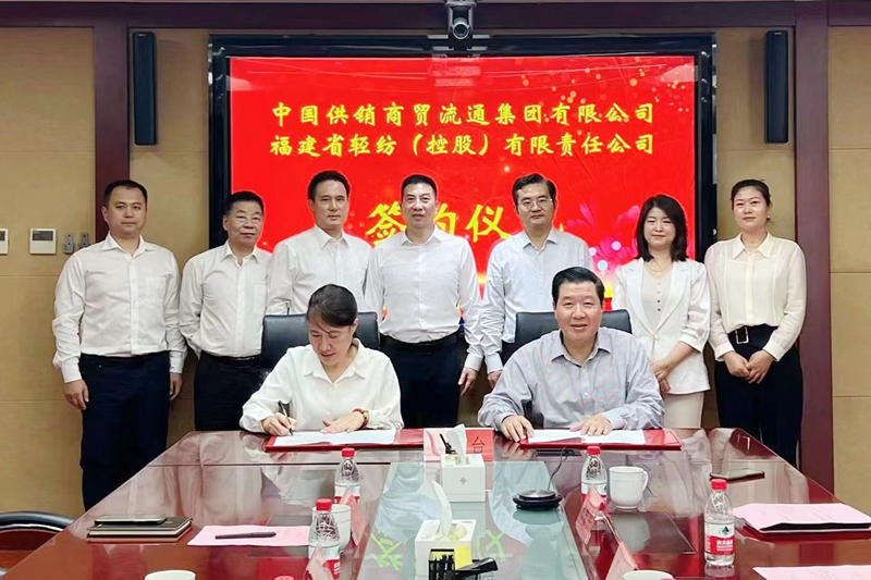 為進(jìn)一步加強(qiáng)供應(yīng)鏈體系建設(shè),提升產(chǎn)業(yè)布局和業(yè)務(wù)規(guī)模,9月25日,福建省輕紡(控股)有限責(zé)任公司與中國(guó)供銷商貿(mào)流通集團(tuán)有限公司在北京簽署戰(zhàn)略合作協(xié)議,正式建立戰(zhàn)略合作伙伴關(guān)系。福建輕紡黨委副書(shū)記、副董事長(zhǎng)、總經(jīng)理鄭書(shū)雄,中國(guó)供銷商貿(mào)集團(tuán)黨委書(shū)記、董事長(zhǎng)朱延?xùn)|出席并見(jiàn)證簽約。福建輕紡黨委委員、總會(huì)計(jì)師鄭劍軍,中國(guó)供銷商貿(mào)集團(tuán)副總經(jīng)理各自代表雙方簽字。