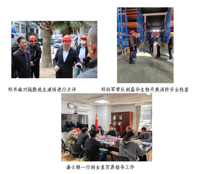 一是四下基層大督查。福建輕紡高度重視相關(guān)工作,多次召開會議,持續(xù)深入學(xué)習(xí)貫徹落實(shí)習(xí)近平總書記關(guān)于安全生產(chǎn)和消防工作的重要指示批示精神,全面構(gòu)建“黨政同責(zé)、一崗雙責(zé)、齊抓共管、失職追責(zé)”和“三管三必須”的消防安全防控體系。領(lǐng)導(dǎo)干部弘揚(yáng)“四下基層”優(yōu)良作風(fēng),重心下移,多次到基層督導(dǎo)檢查工作。黨委副書記、副董事長、總經(jīng)理鄭書雄帶隊(duì)觀摩金皇物業(yè)疏散逃生演練并對其存在的不足之處提出具體意見;黨委委員、總會計(jì)師鄭劍軍帶隊(duì)到晶華生物開展消防安全檢查及生產(chǎn)經(jīng)營調(diào)研工作;黨委委員、紀(jì)委書記、監(jiān)察專員潘士穎一行到金皇貿(mào)易針對金皇大廈設(shè)施設(shè)備老化的安全隱患等問題交流解決思路。