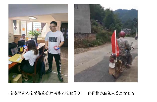 四是敲門入戶送平安。金皇貿(mào)易公司安全聯(lián)絡(luò)員逐一上門,為大廈內(nèi)承租戶分發(fā)消防安全宣傳冊,增強(qiáng)承租戶防火安全意識,提高自防自救能力。權(quán)屬企業(yè)漳平青菁林場通過發(fā)放宣傳單,小喇叭播放森林防火知識、森保人員進(jìn)村入戶開展森林防火法律法規(guī)宣傳等方式,向廣大群眾進(jìn)行消防安全知識宣傳,進(jìn)一步提高廣大群眾在森林防火、安全用火、安全避火等方面的常識和技能。