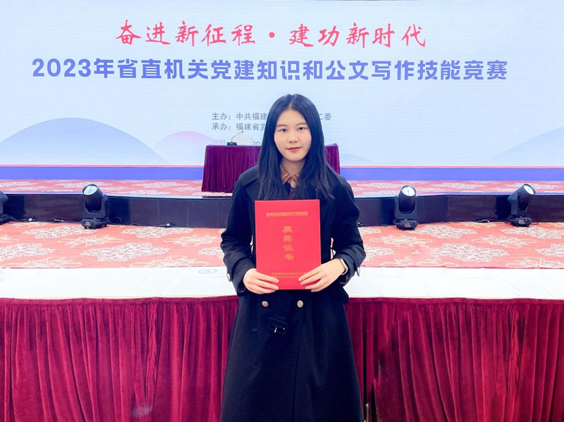 12月7日,福建省直機關(guān)工會工委“奮進新征程 建功新時代”2023年省直機關(guān)黨建知識和公文寫作技能競賽頒獎典禮舉行,福建省輕紡(控股)有限責任公司機關(guān)工會第二小組成員、紀委綜合室主辦楊文嘉同志榮獲一等獎。