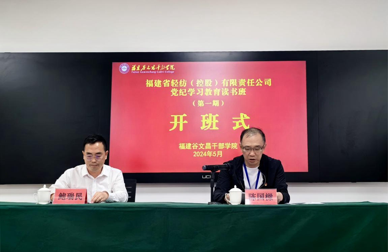 為深入學(xué)習(xí)貫徹習(xí)近平總書記關(guān)于黨紀(jì)學(xué)習(xí)教育的重要講話和重要指示精神,教育引導(dǎo)黨員干部學(xué)紀(jì)、知紀(jì)、明紀(jì)、守紀(jì),推動福建輕紡系統(tǒng)黨紀(jì)學(xué)習(xí)教育走深走實,5月13日,福建輕紡黨紀(jì)學(xué)習(xí)教育讀書班(第一期)在谷文昌干部學(xué)院正式開班。公司領(lǐng)導(dǎo)及司管干部共41人參加學(xué)習(xí)。公司黨委委員、副總經(jīng)理陳國樑主持開班式并作動員講話。福建谷文昌干部學(xué)院副院長鮑瑞民出席開班式并致辭。