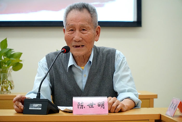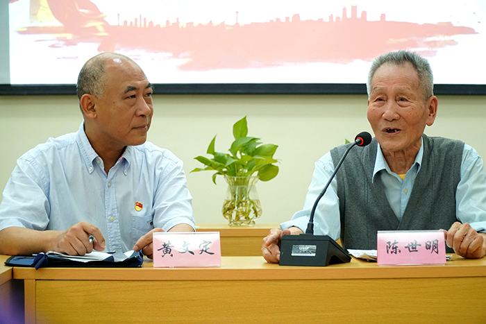 講座中,95歲高齡的陳老講述了革命戰(zhàn)爭(zhēng)年代,福州解放的歷程及自己一生幾經(jīng)生死考驗(yàn)卻從未言棄的故事。因?yàn)樾闹谐錆M著“革命理想高于天”的豪邁情懷,因?yàn)槔硐胄拍顖?jiān)如磐石,入黨71年,陳世明同志始終不忘初心,牢記使命,把黨的事業(yè)當(dāng)作自己畢生的追求。這一堂生動(dòng)的革命歷史教育課,深深觸動(dòng)了在場(chǎng)所有人。