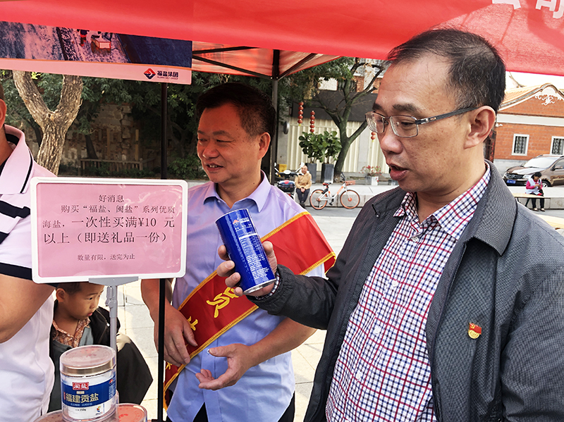 9日上午,支部黨員來(lái)到泉州德濟(jì)門遺址廣場(chǎng),參加泉州鹽業(yè)公司組織的“閩鹽宣傳走進(jìn)社區(qū)”活動(dòng),大家主動(dòng)分發(fā)宣傳單并為社區(qū)居民普及食鹽安全及科學(xué)補(bǔ)碘知識(shí)。