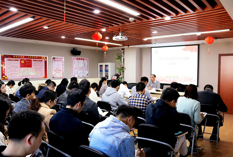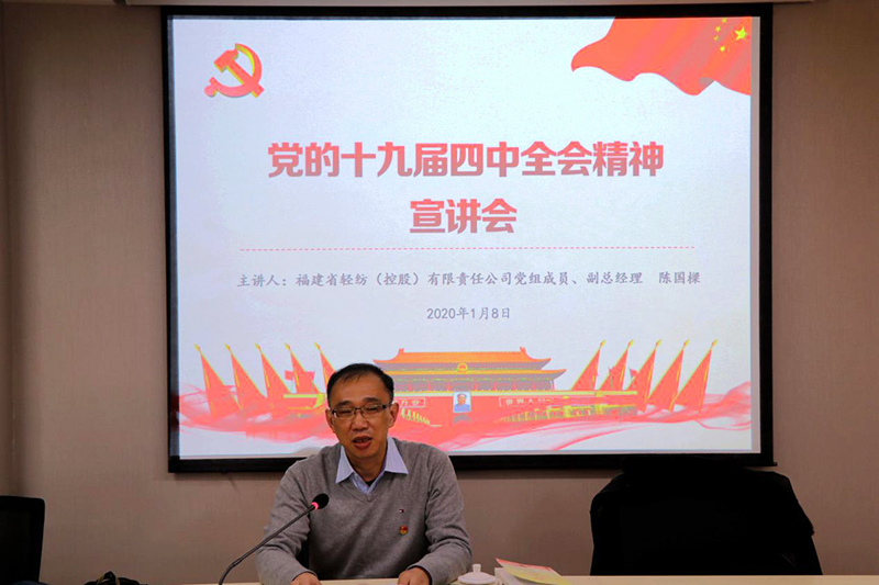 1月8日,福建輕紡黨組成員、副總經(jīng)理陳國樑到金皇環(huán)保宣講黨的十九屆四中全會(huì)精神。金皇環(huán)保公司及權(quán)屬環(huán)科檢測全體黨員參加宣講活動(dòng)。