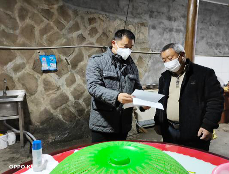 根據(jù)村實際和春節(jié)返鄉(xiāng)人員情況,張帆一方面帶隊深入到主村及兩個自然村一家一戶了解返鄉(xiāng)人員具體情況,另一方面逐戶摸排統(tǒng)計湖北返鄉(xiāng)人員、特別是武漢返鄉(xiāng)人員,確鑿掌握返鄉(xiāng)時間,詳細人員,與其他人員密切接觸等詳細信息。截至目前,150位村民都已挨家挨戶進行排查,并做好體溫測量工作,除外出返村人員86人外,未發(fā)現(xiàn)從湖北武漢和浙江溫州回家過年的村民或外來走親訪友人員。在村疫情防控卡點,張帆帶頭值班,對全村所有進出人員和過往車輛,逐一進行登記,對經(jīng)過人員進行測量體溫,體溫正常方可通過。除了日常工作以外,各工作小組還會不定時的給村民測量體溫,并在全村巷道噴灑消毒液。