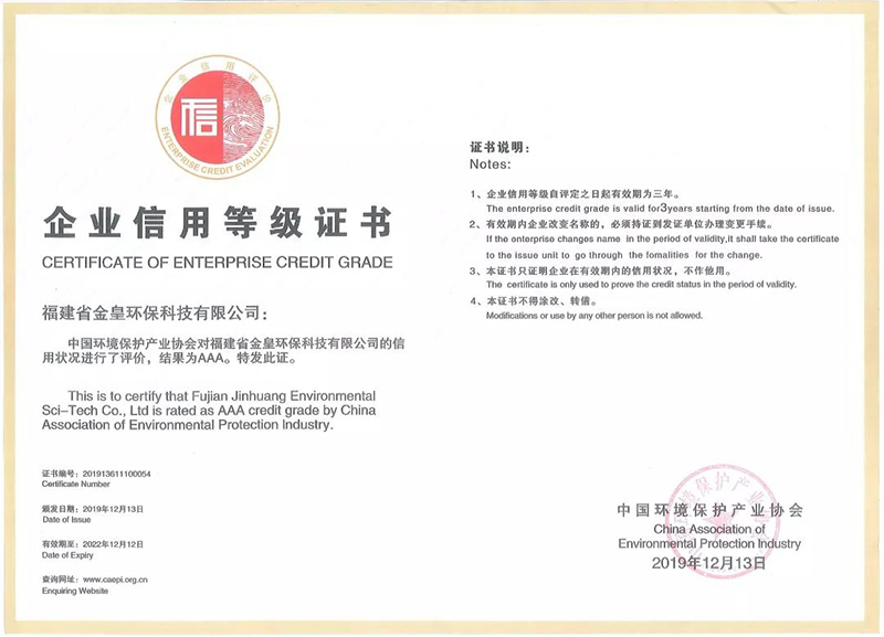 為促進(jìn)環(huán)保產(chǎn)業(yè)誠(chéng)信體系建設(shè),提高環(huán)保企業(yè)誠(chéng)信意識(shí)和信用水平,中國(guó)環(huán)境保護(hù)產(chǎn)業(yè)協(xié)會(huì)于2019年12月中旬評(píng)選出第十二批環(huán)保企業(yè)信用單位,金皇環(huán)保在本次評(píng)選中取得AAA信用評(píng)級(jí)。