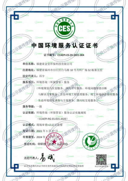 繼2019年末成為全省首家榮獲中國環(huán)境保護產(chǎn)業(yè)協(xié)會AAA信用評級環(huán)保咨詢類企業(yè)之后,1月27日,金皇環(huán)保成為全省首家通過環(huán)境咨詢(環(huán)保管家)服務(wù)中國環(huán)境服務(wù)認證的企業(yè),服務(wù)等級為一級。