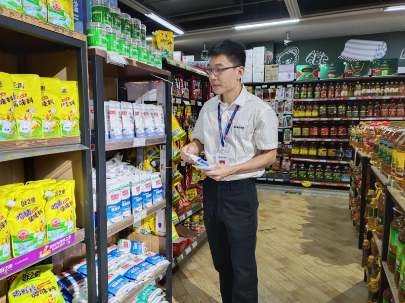 陳敬營同志正在進(jìn)行商超宣傳維護(hù)工作