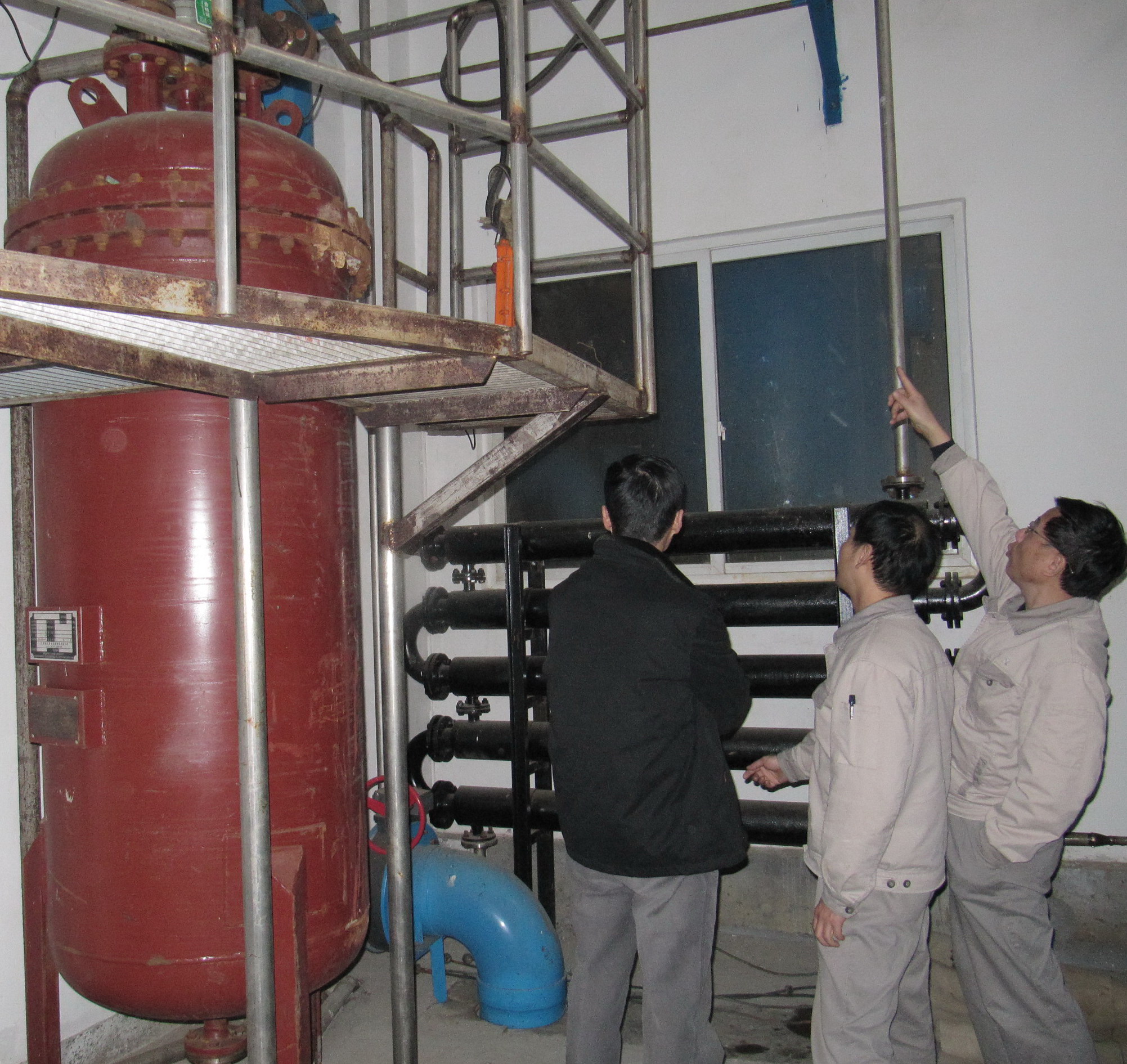 上圖為檢查組在南紙液氯操作室檢查全自動泄氯吸收裝置