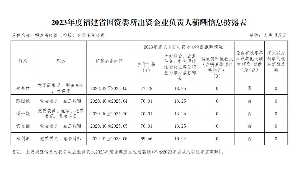 福建省國資委所出資企業(yè)負(fù)責(zé)人2023年度薪酬信息披露表