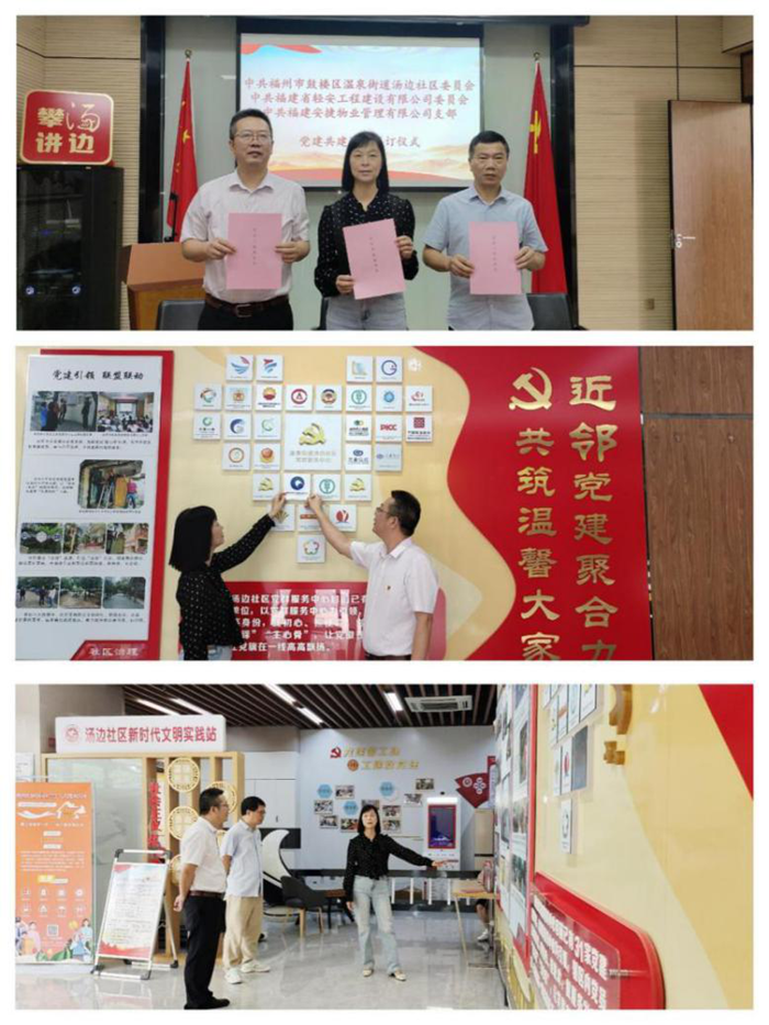 為深入學(xué)習(xí)貫徹習(xí)近平新時(shí)代中國(guó)特色社會(huì)主義思想和黨的二十大、黨的二十屆三中全會(huì)精神,切實(shí)推動(dòng)精神文明創(chuàng)建和單位文化建設(shè),構(gòu)建基層黨組織共建、各方黨員參與、共同提升黨建工作水平的新格局,經(jīng)各方黨組織協(xié)商一致,中共福建省輕安工程建設(shè)有限公司委員會(huì)、中共福州市鼓樓區(qū)溫泉街道湯邊社區(qū)委員會(huì)、中共福建安捷物業(yè)管理有限公司支部于2024年9月27日上午在溫泉街道湯邊社區(qū)簽訂三方黨建共建協(xié)議,正式結(jié)成黨建工作聯(lián)盟單位。