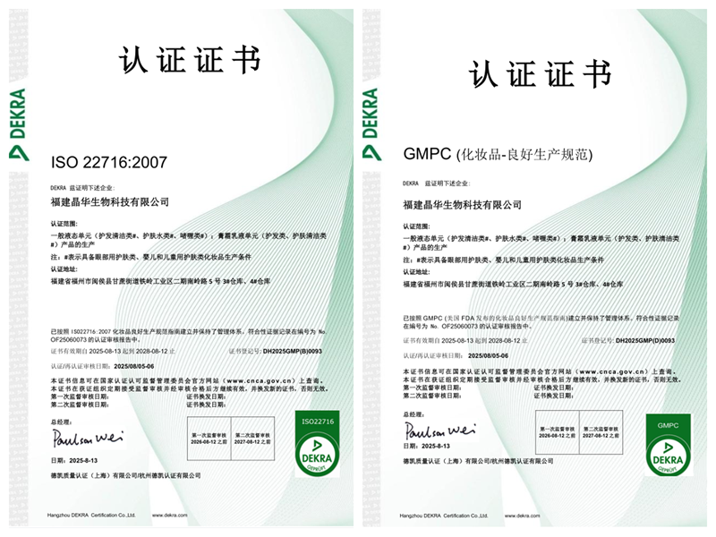 晶華生物將以此為全新起點,持續(xù)深耕質(zhì)量管理領域,不斷優(yōu)化生產(chǎn)工藝流程,以更安全、更優(yōu)質(zhì)的化妝品,滿足國內(nèi)消費者需求的同時,積極拓展海外市場,為全球消費者創(chuàng)造更多更好的安心之選與卓越之美。