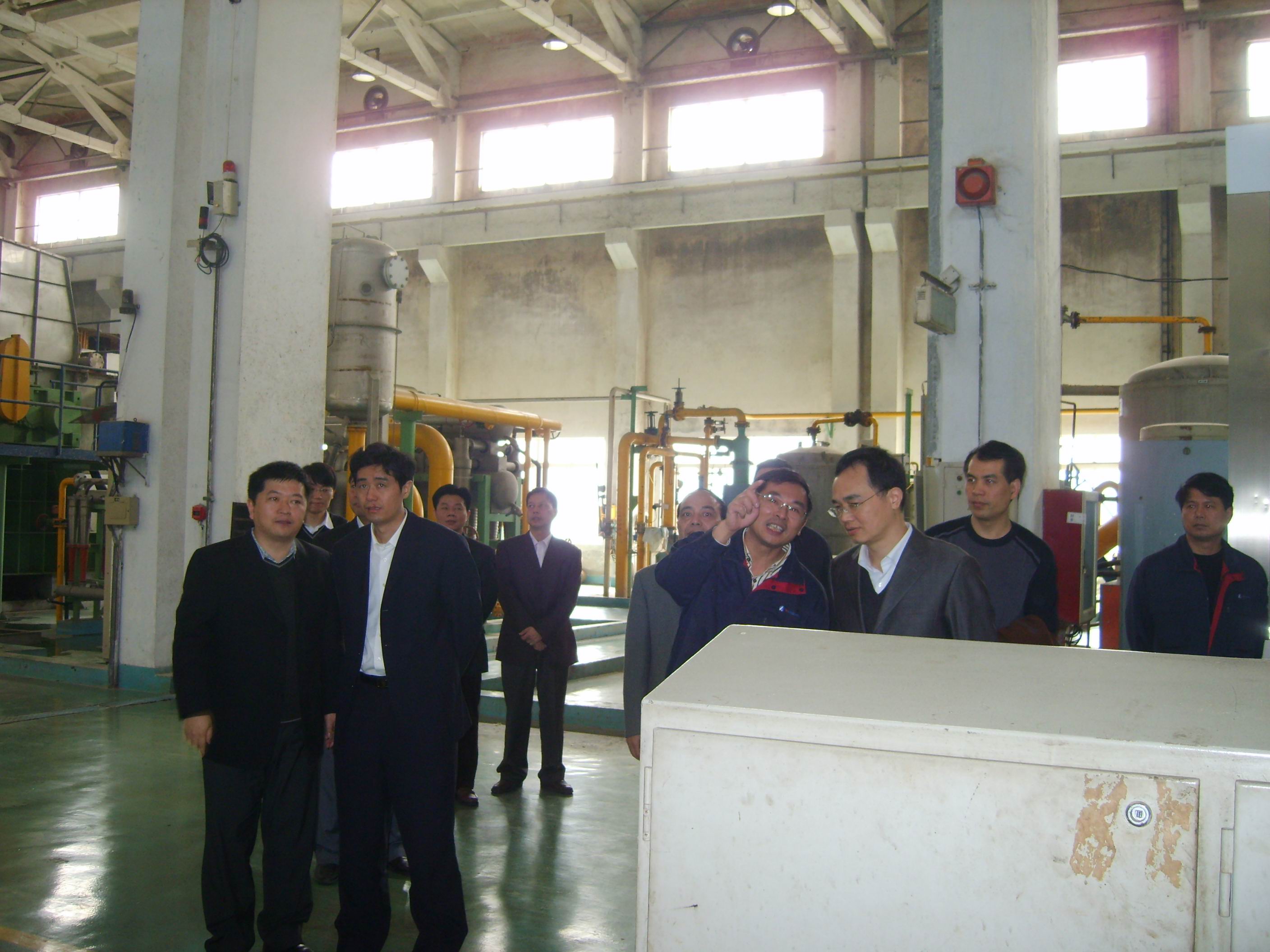 林寶金、于紅勝在鄭震、林孝幫等陪同下參觀南紙股份人纖漿車間