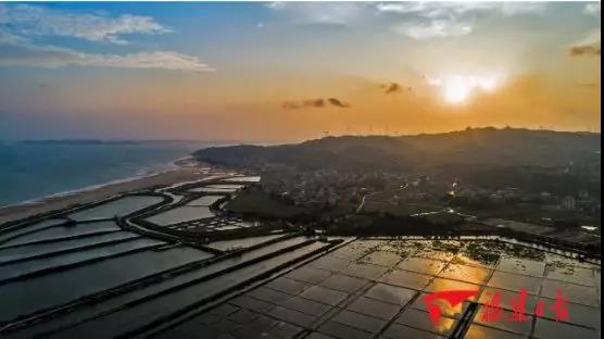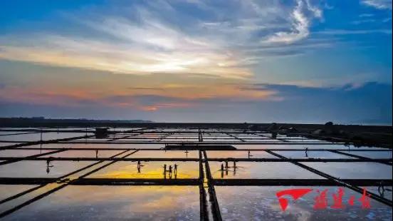 (夕陽(yáng)下福建海鹽鹽田金輝熠熠)