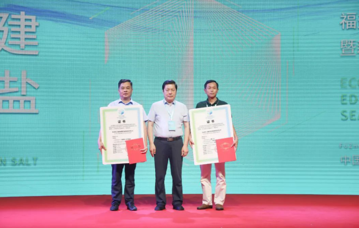 經(jīng)中國(guó)鹽業(yè)協(xié)會(huì)生態(tài)海鹽評(píng)審管理技術(shù)委員會(huì)審定,福鹽集團(tuán)旗下的福建省莆田市晶秀輕化有限公司及福建省泉州晶海輕化有限公司生產(chǎn)的食鹽產(chǎn)品首家通過(guò)了《生態(tài)海鹽評(píng)價(jià)技術(shù)規(guī)范》評(píng)審。發(fā)布會(huì)上,中鹽協(xié)會(huì)宋占京副理事長(zhǎng)鄭重地將《生態(tài)海鹽證書(shū)》頒發(fā)給了福建省莆田市晶秀輕化有限公司及福建省泉州晶海輕化有限公司。