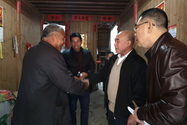 12月20日,福建省輕紡(控股)有限責任公司黨組書記、總經(jīng)理黃文定一行分別到周寧縣瑪坑鄉(xiāng)下坑村、禮門鄉(xiāng)梅渡村實地調(diào)研扶貧攻堅工作,看望駐村書記林繼業(yè)、張帆,并慰問當?shù)刎毨簟G嗌郊垬I(yè)黨委書記林小河、省鹽業(yè)集團公司常務副總經(jīng)理莊燦陽等陪同調(diào)研。
